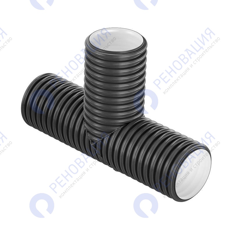 Область применения: тройник представляет собой двухслойный гофрированный фитинг используемый при монтаже гофрированных труб для устройства канализации и систем водоотведения.