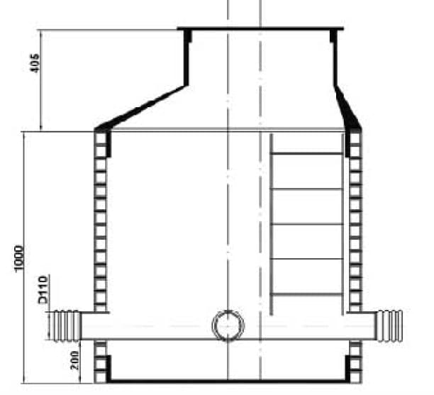 Канализационный лотковый тройниковый колодец FD предназначен для оборудования, эксплуатации и обслуживания систем безнапорной хозяйственно-бытовой канализации, водоотведения стоков промышленных предприятий, дождевых осадков и грунтовых вод.