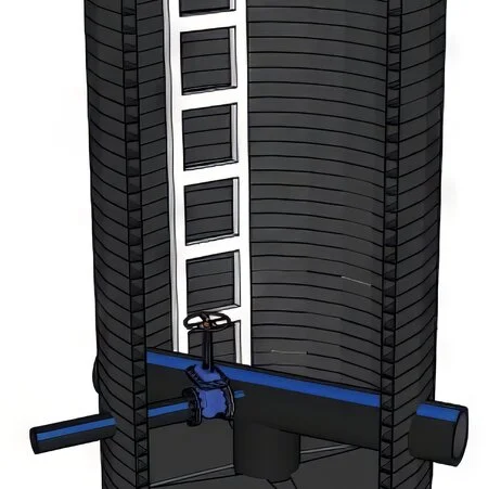 Водопроводный сварной колодец FD SVT изготавливается из спиральновитой трубы FD. Спиральновитые шахты благодаря уникальной конструкции стенки имеют большие показатели кольцевой жесткости при существенно меньшем весе. Типовой сварной колодец состоит из шахты, горловины и заглушки. Подведение гладких труб соответствующего проектного диаметра осуществляется непосредственно в шахту колодца.