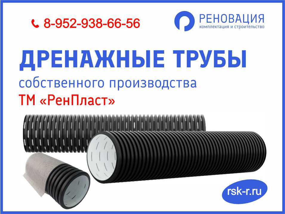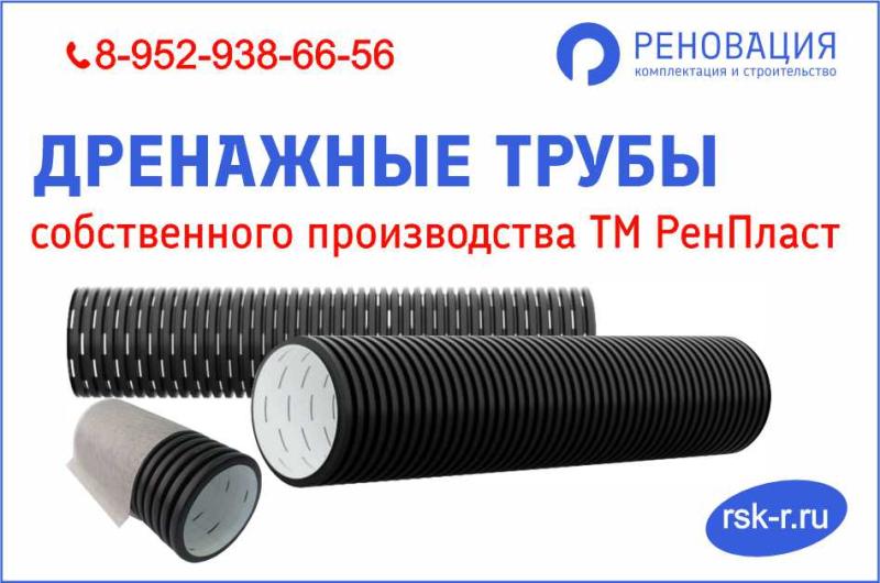 Дренажные трубы собственного производства ТМ РенПласт. В наличии на складе в Новосибирске.